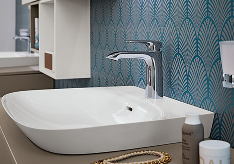 Zusammen mit Unterschrank und Spiegel beziehungsweise Spiegelschrank bildet das Waschtischensemble das Zentrum jedes Badezimmers. Mit hellen und freundlichen Tönen arbeitende Farbkonzepte zur harmonischen Raumwirkung, mit Spiegelflächen und einer Verteilung der Lichtquellen auf unterschiedlichen Ebenen kann der Längsdehnung schlauchförmiger Räume entgegengewirkt werden, und kleine Bäder erscheinen so luftiger und großzügiger.